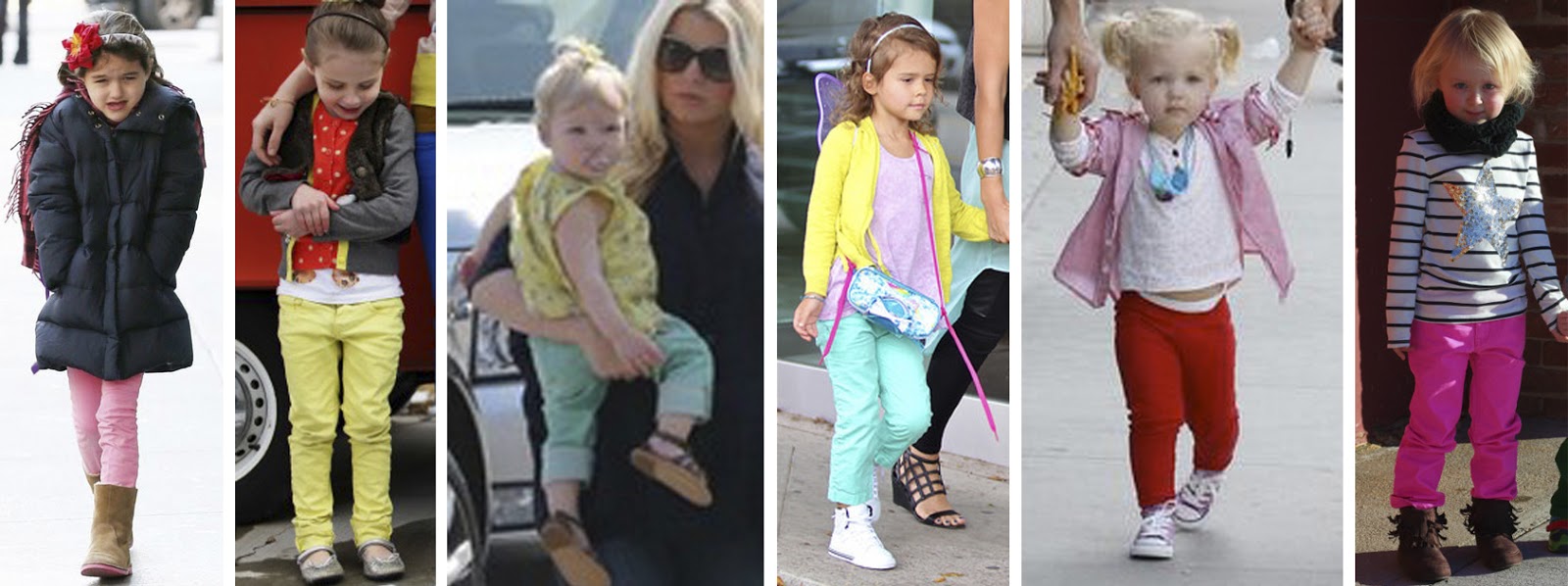 Recuerda que en este momento están muy de moda los colores neón y los colores pastel, a continuación te muestro algunas hijas de famosos artistas como la hija de Tom Cruise y Katie Holmes que lleva unos lindos pantalones rosados acompañados de un abrigo y botas, Suri Cruise es considerada desde ya una pequeña fashionista. O mira la bebe de Jessica Simpson que acompaño sus pantalones menta con una blusa delicada amarilla. Y que tal la hija de Jessica Alba con sus pantalones menta?… logro un contraste en cada prenda combinando menta, amarillo y rosa a esto le sumo los tenis altos que están muy de moda. Estas mamas se han interesado en vestir bien a sus hijas sin hacerlas ver como señoritas, el balance es ideal.. tu qué piensas de esto? Los jeans son las prendas más cómodas del guarda ropas, los puedes combinar con cualquier cosa y te sirven a diario. Mira la variedad de colores que tiene Carrion en tallas desde la 2 a la 10 de niña.